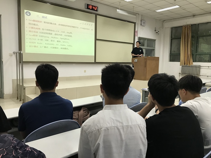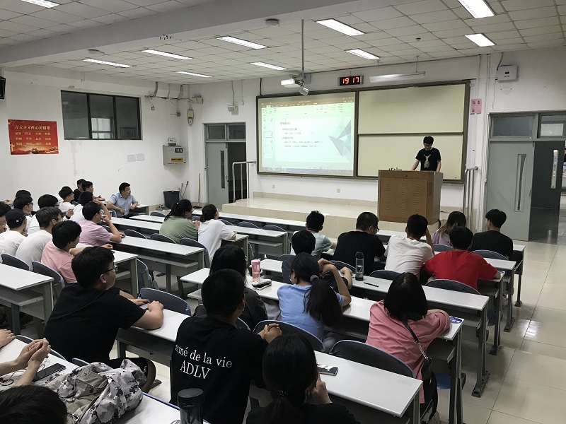 交流会由人工智能系党支部书记包永堂老师主持。会上邀请了2018级计算机技术研究生陈鑫、2017级计算机科学与技术本科生王冠、刘鸣亮、郑松龄分享他们的就业、实习经历。系主任崔宾阁老师、2018级与2019级班主任及全体同学参加了交流会。