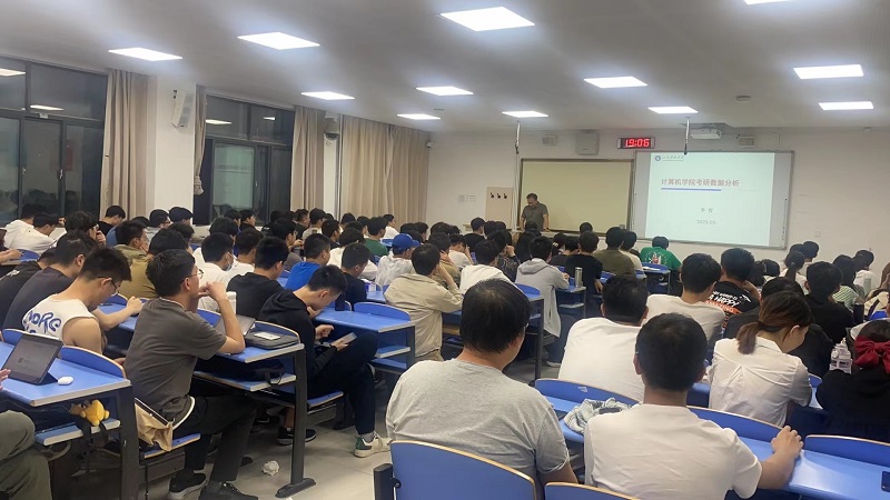 交流会由物联网工程系主任罗汉江老师主持。李哲老师首先比较分析了物联网工程专业2022届毕业生的考研情况。近年来,由于疫情反复、经济下行压力大、国外局势动荡等因素的影响,就业形势严峻,考研成为缓解就业压力的首选,致使考研竞争日趋激烈。然后分析了2019级同学在数学课程、专业课程、学科竞赛等方面的数据。建议考研的同学结合自身情况,量力而行,曲线救国,选择合适的目标院校。