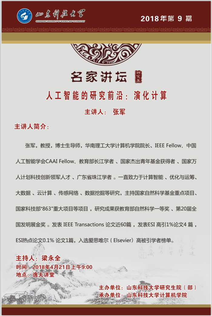 “名家讲坛”2018年第9期:人工智能的研究前沿:演化计算