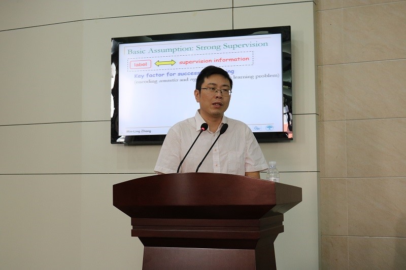 张敏灵作题为“偏标记学习的研究”的专题报告,他通过介绍弱监督学习、多标记学习、多事例学习,引出报告重点并对偏标记学习的框架、算法进行了讲解,最后介绍了在该领域的最新研究。孟德宇作题为“从粗放式到集约式:针对复杂数据的鲁棒性深度学习方法”的专题报告,他对深度学习进行了相关讲解,指出深度学习中的存在数据偏差,并针对该问题进行了训练数据集的学习,提出了新的损失函数。俞扬作题为“高校强化学习的一些探索”的专题报告,他讲解了对高效强化学习的一些探索,通过对医疗中需要诊断和治疗的顺序,提出报告的核心即能否根据预测做出决策,通过列举相关实例,说明了在不同环境下,预测-决策的模型也不同。邬霞作题为“基于图论的脑网络构建与应用研究”的专题报告,她介绍了基于图论的脑网络构建与应用研究,指出脑网络构建能够对病症、人格进行预测,强调了图论在脑科学应用中发挥着重要作用。张道强作题为“脑影像智能分析与脑疾病早期诊断”的专题报告,他介绍了脑影像智能分析与脑疾病早期诊断的相关内容,并利用阿尔茨海默病这一实例对大脑的影响,展开了详细的讲解。