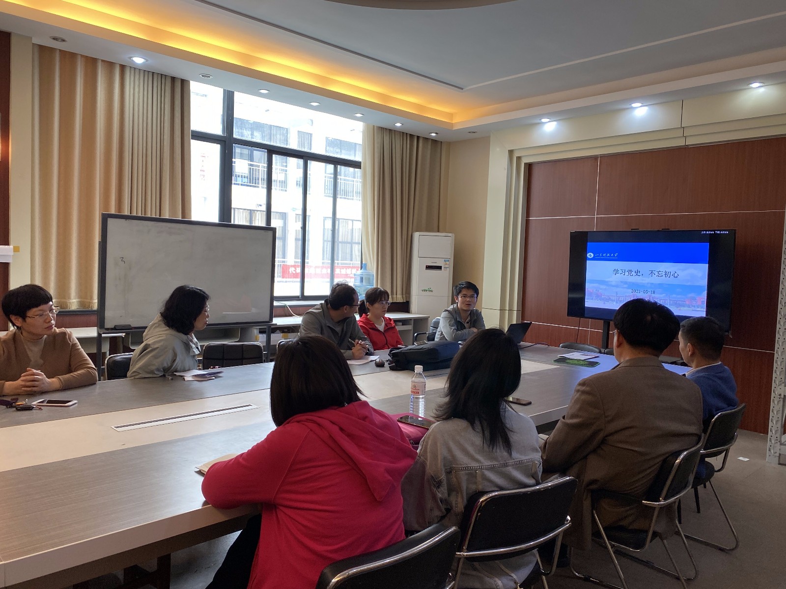 2021年5月19日下午,计算机系党支部组织全体党员以“中国共产党始终不渝的为民初心宗旨”为主题开展党史教育主题研讨活动。研讨会上,计算机系党员王路和吴庚坤同志分别作了主题发言。